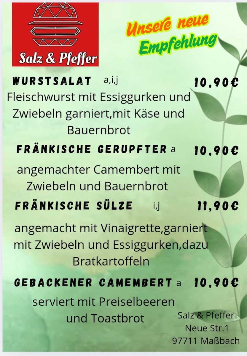 Welcome to Salz & Pfeffer, a gem hidden in Maßbach, Germany. This charming eatery, located at Neue Str. 1, offers a delightful fusion of classic flavors ranging from mouthwatering burgers to exquisite schnitzels, alongside fresh salads and small dishes.